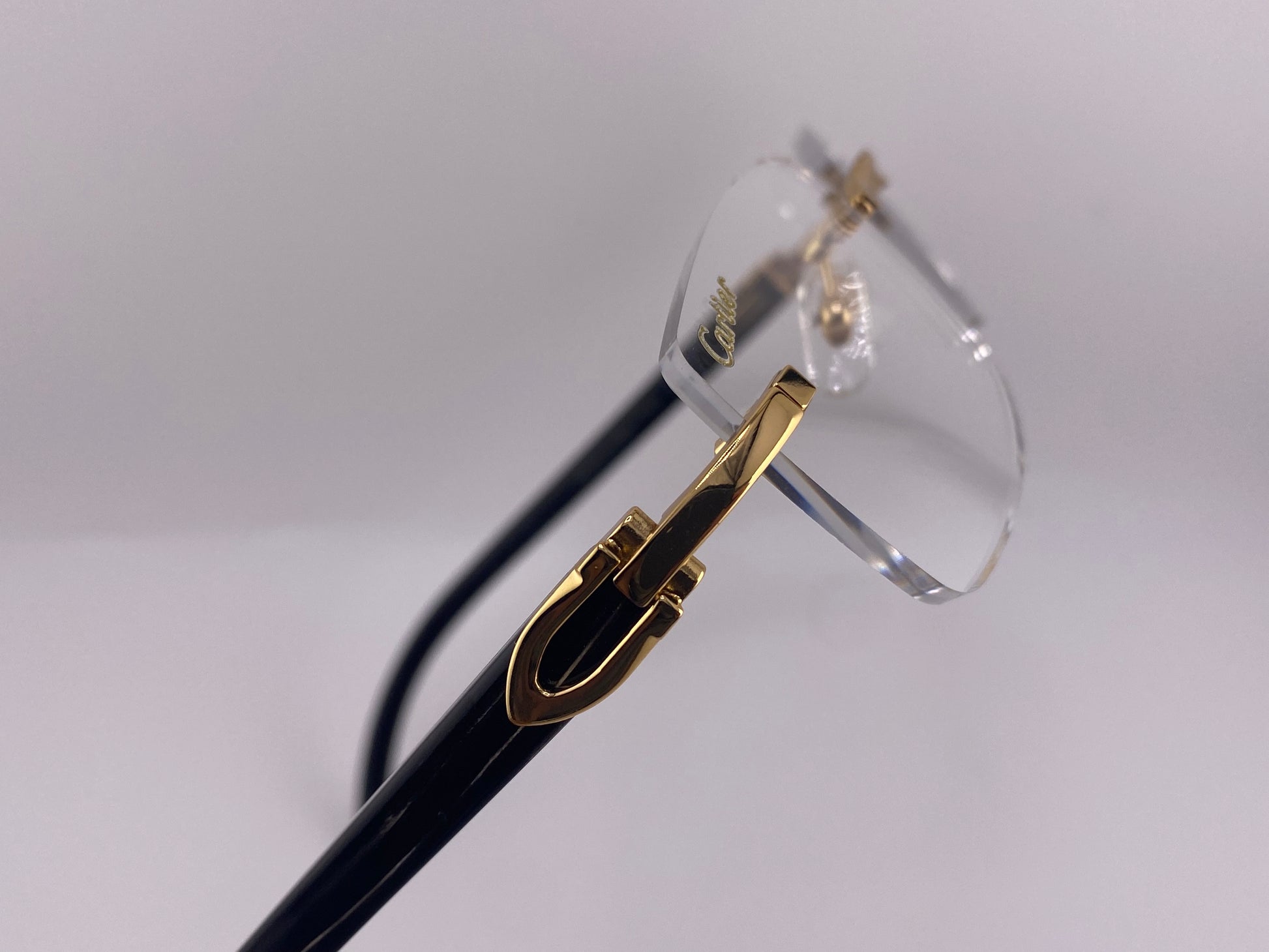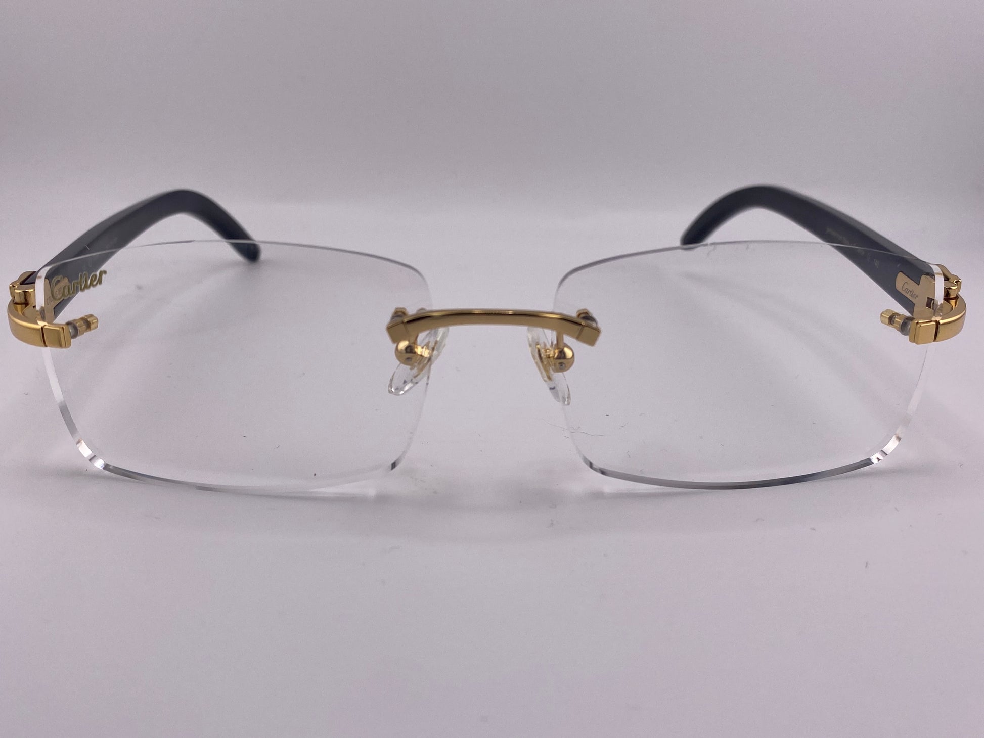 Elevate Your Style with these Black Buffs featuring a clear lens and gold framing